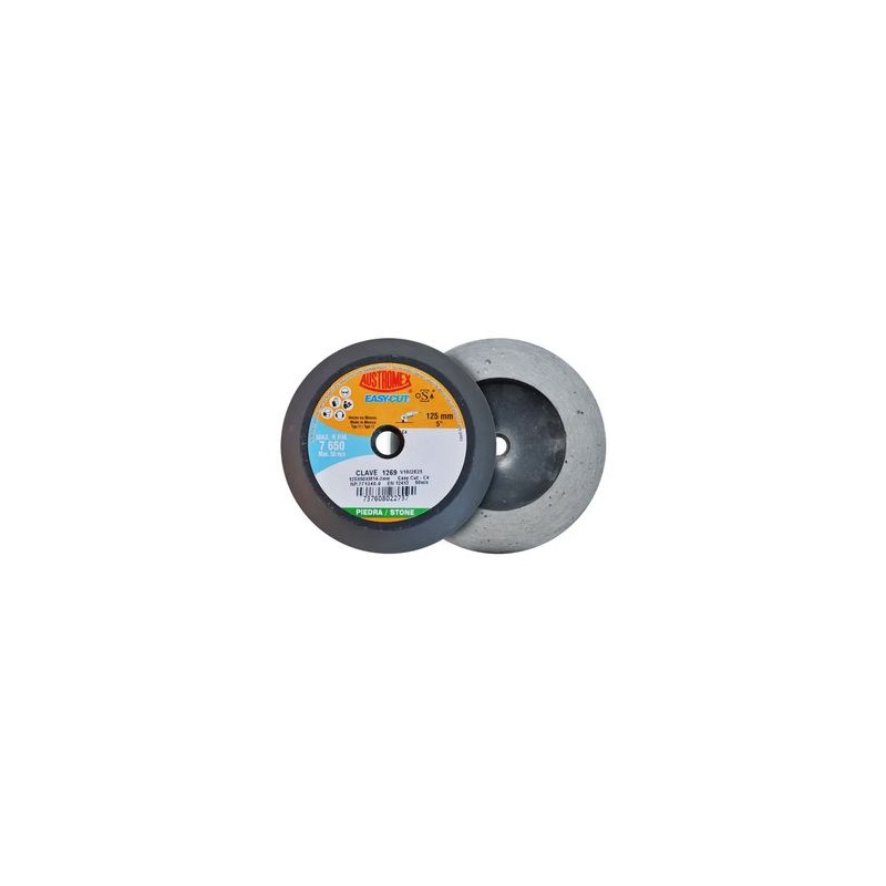 Características:• Para pulido de mármol, terrazo y granito.• Fabricadas con carburo de silicio negro, corcho y agentes abrillantadores.• Óptimo desempeño con buenos acabados.• Rosca integrada.• Ideal para colocadores o para realizar mantenimiento.Especificaciones:Dimensiones (in): 5 Plg x 2 Plg x M14-2Dimensiones (mm): 125 x 50 x M14-2Abrasivo: Carburo de SilicioEspecificación: Easy Cut- C4Máx. rpm: 7,650Vel. Máxima: 50 m/sLínea: EasyCutInstrucciones de operación:• Utilice en una esmeriladora angular.• Monte la copa y déjela girar en vacío durante un minuto para verificar que no esté dañada.• No presione excesivamente, ni golpee contra el material de trabajo.Información de seguridad:• Nunca exceda la velocidad marcada en la etiqueta.• Siempre utilice guardas de seguridad.• Siempre utilice equipo de seguridad completo (guantes, protección auditiva, mascarilla y lentes de seguridad).• Nunca utilice una copa que se haya mojado.• El uso inadecuado puede provocar lesiones severas.• Úsese como lo indica la norma ANSI B7.1Si una copa sufre caída, fractura, desprendimiento de una sección o se sospecha que puede tener daño, no deberá ser montada.Almacenamiento:• Guarde los copas sobre una superficie plana y no los golpee, ni los deje caer.• Los discos no deben ser expuestos a:(a) Agua u otros solventes.(b) Temperaturas extremas o condiciones de humedad.• Para más información consultar la norma ANSI B7.1.