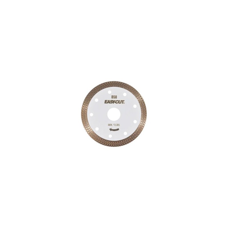 Medida Principal (plg): 4-1/2 Plg x 0.05 Plg x 7/8 PlgMedida secundaria (mm): 115 x 1.4 x 22.2Especificación: Easy Cut TurboLínea: EasyCut®Max RPM: 13,300Aplicación• Para corte de cuarcita, porcelanato, azulejo, cerámica dura, granito y mármol.• Ideal para cortes finos y rápidos, sin despostillar.Instrucciones de operación• Uso en húmedo.• Utilice en una esmeriladora angular.• Monte el disco respetando siempre el sentido de giro marcado con una flecha en el mismo y déjelo girar en vacío durante un minuto para verificar que no esté dañado.• Utilice una fuerza moderada, ya que el exceso de presión daña los diamantes.Información de seguridad• Siempre utilice guardas de seguridad.• Nunca exceda la velocidad máxima de giro marcada en la etiqueta.• Siempre utilice equipo de seguridad completo (guantes, protección auditiva, mascarilla y lentes de seguridad).• No utilice para operaciones de desbaste.• Nunca intente realizar cortes curvos.Manejo• La inspección inicial debe hacerse en el empaque original. Si existe evidencia visible de daño, la mercancía no debe ser aceptada.• Maneje los discos con precaución para prevenir golpes o caídas. Si un disco sufre fractura, desprendimiento de un segmento o tiene un daño evidente, no deberá ser montado.Almacenamiento• El disco debe almacenarse en condiciones libres de humedad, polvo y suciedad, de preferencia en su empaque original, sin estar expuesto por largos periodos a superficies calientes, frías o mojadas